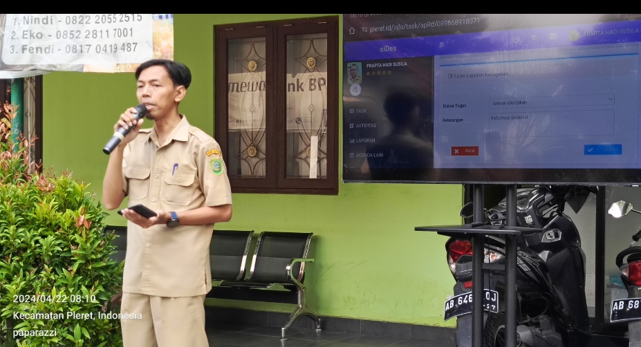 InfoPleret, Pagi ini, Senin 22 April 2024, digelar apel pagi di Kalurahan Pleret dengan perhatian khusus pada reformasi birokrasi. Lurah Pleret, Taufiq Kamal, menekankan pentingnya pencatatan harian kegiatan atas tugas pokok dan fungsi (Tupoksi) pamong Kalurahan sebagai langkah awal dalam penerapan reformasi tersebut.
