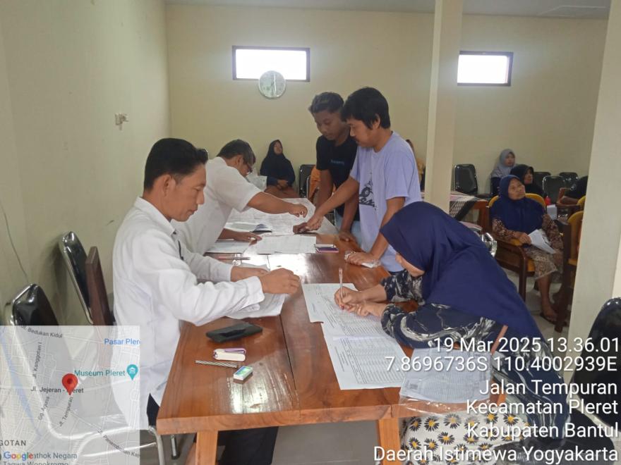 Pleret, 19 Maret 2025 - Pemerintah Kalurahan Pleret hari ini resmi menyalurkan Bantuan Langsung Tunai (BLT) Dana Desa (DD) untuk bulan Januari, Februari, dan Maret tahun 2025. Kegiatan ini dilaksanakan di Balai Kalurahan Pleret, yang dihadiri oleh seluruh penerima manfaat serta pihak-pihak terkait.