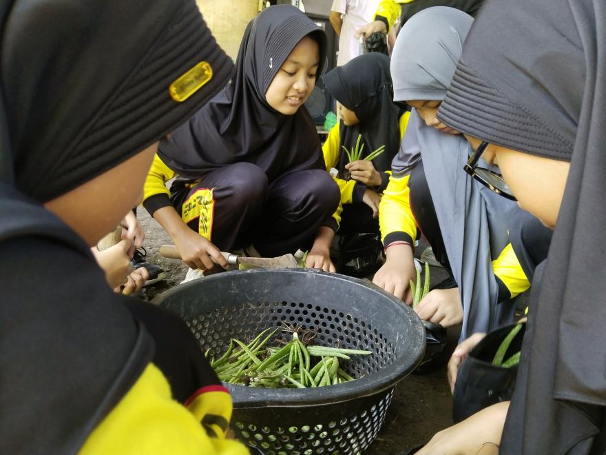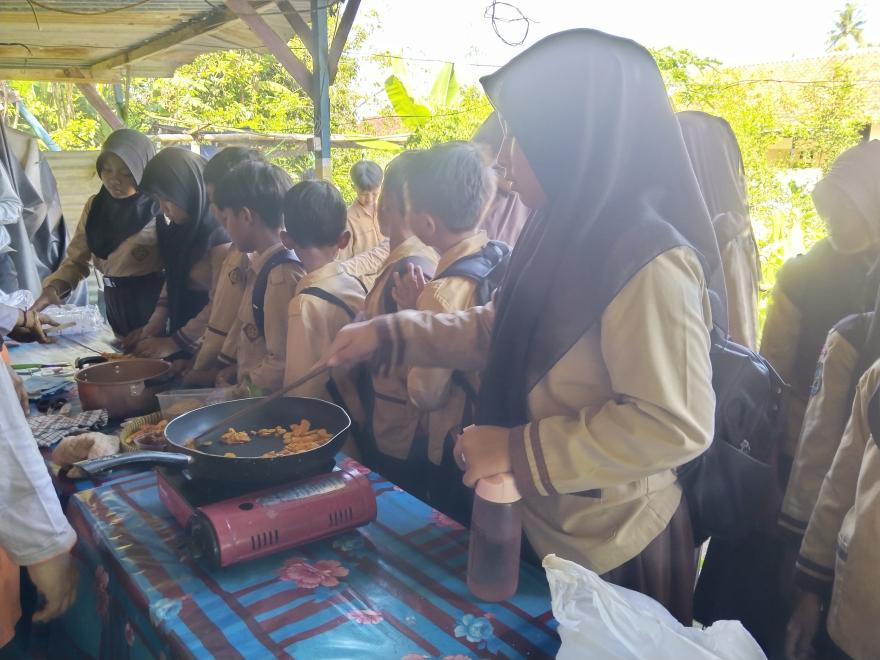 Setelah itu, para siswa melanjutkan kegiatan ke Kelompok Wanita Tani (KWT) Puspa Gemari di Kedaton. Di sini, mereka belajar langsung cara menanam tanaman serta membuat jamu tradisional bersama ibu-ibu pengelola KWT. Proses belajar yang interaktif ini membuat siswa terlibat secara aktif dan belajar dengan cara yang menyenangkan.
