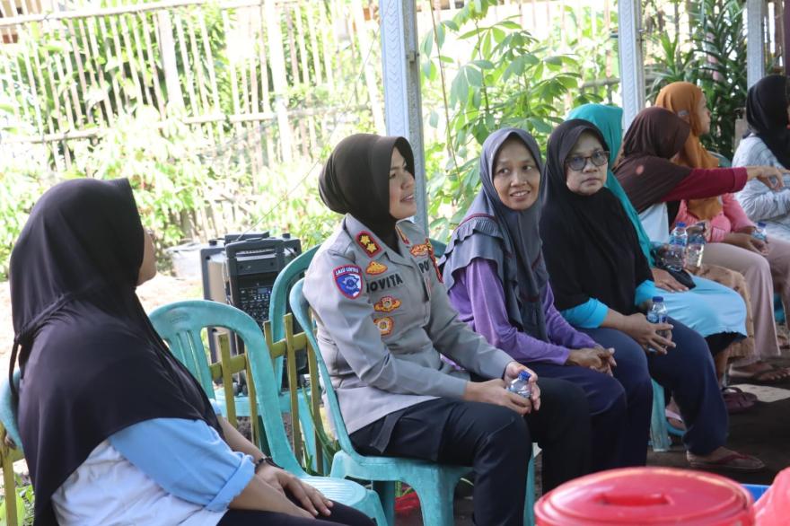 Usai menanam, AKBP Novia menyempatkan diri untuk berbincang dan memberikan motivasi kepada anggota KWT Puspa Gemari. Ia mengapresiasi semangat para ibu-ibu yang aktif mengelola kebun sebagai sumber pangan mandiri dan mendorong mereka untuk terus berinovasi dalam pemanfaatan lahan pekarangan.