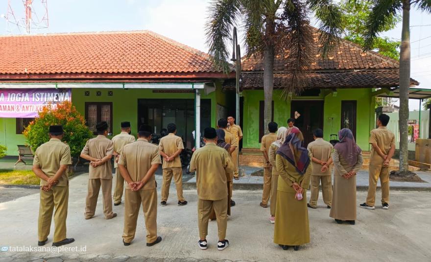 InfoPleret – Pemerintah Kalurahan Pleret melaksanakan apel rutin Senin pagi yang dipimpin oleh Kamituwa Kalurahan Pleret, Bapak Anang Jatmiko, pada Senin (29/9/2026). Apel diikuti oleh Lurah Pleret, jajaran pamong, serta staf kalurahan.
