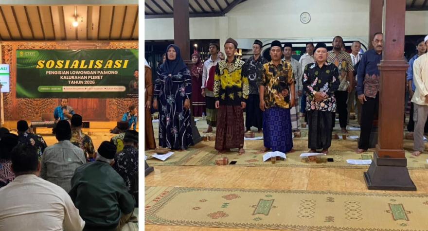 InfoPleret - Senin, 19 Januari 2026. Pemerintah Kalurahan Pleret menggelar kegiatan Sosialisasi Pengisian Lowongan Pamong Kalurahan Pleret Tahun 2026 pada formasi jabatan Dukuh Trayeman, Dukuh Kauman, dan Dukuh Keputren. Kegiatan ini dilaksanakan oleh Panitia Pengisian Lowongan Pamong Kalurahan Pleret sebagai bagian dari tahapan awal proses pengisian pamong sesuai ketentuan peraturan yang berlaku.